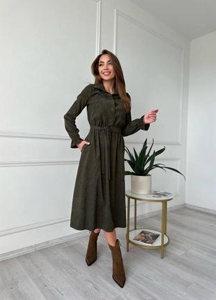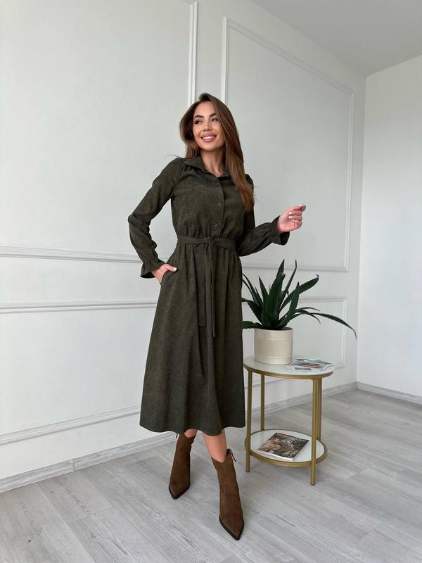 Трендовое платье миди Мод 106 ☝️Модель на функциональных кнопках, с поясом и карманами, английский воротник. ▫️Размеры:42-44,46-48,50-52 ▫️Ткань-вельвет на х<unk> б основе