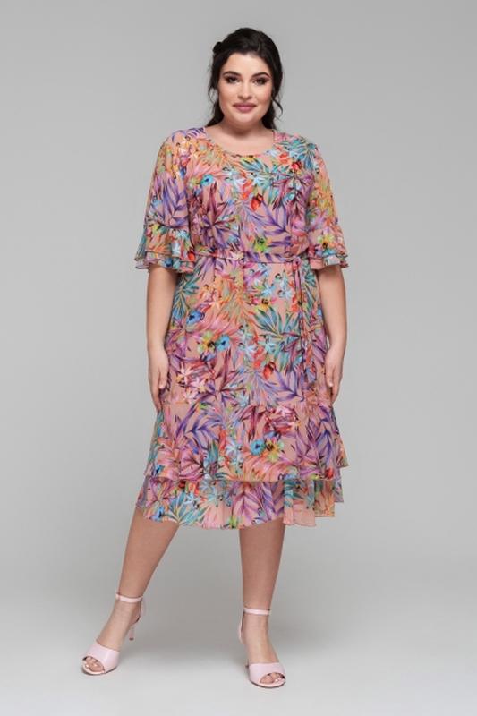 Платье летнее цветочное шифоновое на подкладке нарядно-повседневное
