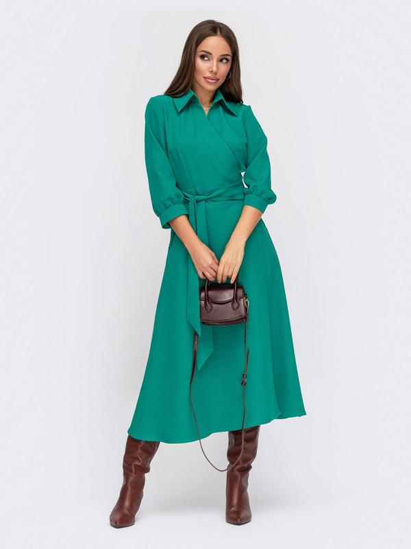 Платье миди изумрудное на запах с отложным воротником. В боковых швах предусмотрены карманы. Материал/cклад: костюмный креп (50% вискоза, 50% полиэстер); Растяжимость: нет; Длина изделия: 122 см; Длина рукава (от плечевого шва): 45 см; Параметры модели: 85х61х95, рост 167 см; На модели представлен 44 размер. ❗ Все заказы оформляются только через ЧАТ, через кнопку КУПИТЬ ➡️ отклонены. Страна производитель ➡️ Украина. 🚛 Доставка ➡️ "Новой почтой" (2-3 рабочих дня). Доставка сплачивает покупатель. 👛 Оплата ➡️ 100% Передача на р/р ФОП "ПриватБанка" или после платья с авансом. Если посылку не забираете, аванс возвращаем по учету транспортных расходов в обе стороны. 📦 🔁 Обмен и возврат ➡️ за счет покупателя, при наличии оригинального и невредимого упаковки и ярлыков, отсутствия следов эксплуатации, стирки и ношения.
