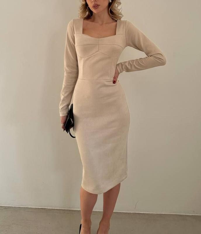 Классическое замшевое платье миди ниже колена🔥 Тканина: замша Размеры: 42-44, 46-48 Цвета: бежевый, черный