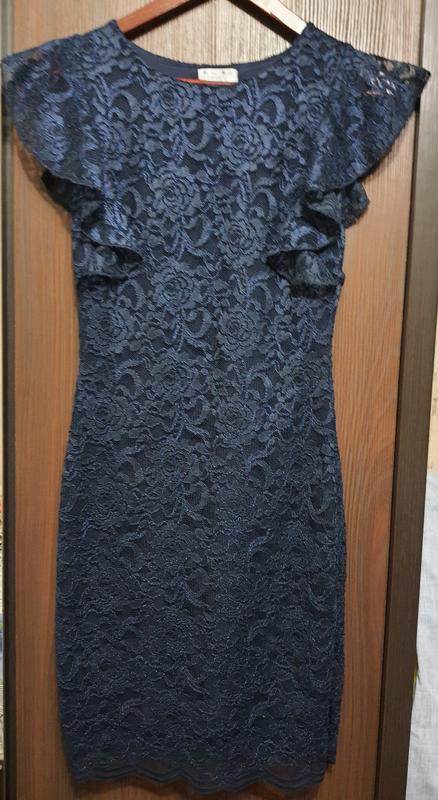 Очень красивое и нарядное гипюровое платье в темно-синем цвете. Хорошо садится по фигуре. Не просвещается, присутствует внутри подкладка. Тянется. Размер XS-S. Длина 90 см. ПОГ 37 см. ПОТ 34 см. ПОБ 38 см. Дефектов, затяжек и плям нет.