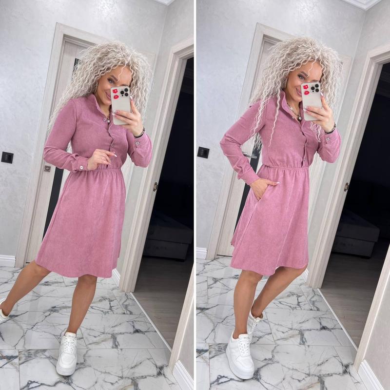 Вельветова сукня Размерный ряд S,M,L,XL Цвета лаванда, графит, мята,джинс, пудра Платье с карманами из практичной ткани вельвет, ткань мягкая и приятная к телу. Супер стильная, удобная и комфортная, застегивается на пуговицы. Воротник стойка Длинный рукав с манжетом также на пуговицах. Подойдет под разную обувь