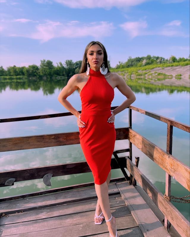 Шикарно садится по фигуре😻 Мой размер хс Рост 163 см Длина от горловины 103 см Талия 32 см(она завышенная)