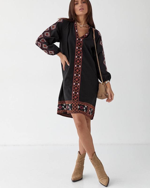 Стильное вышитое платье свободного кроя, модное женское платье вышиванка черного платья с вышивкой Очень красивая и женственная • производство Турция • размеры S M L • ткань хлопок (80% хлопок, 20% полиестер) Стильное вышитое платье свободного кроя, модное женское платье вышиванка чёрное платье с вышивкой мам