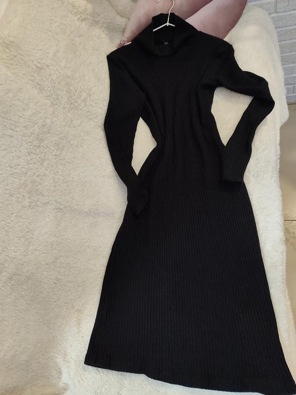 Класне плаття міді по фігурі в рубчик в'язана сукня
