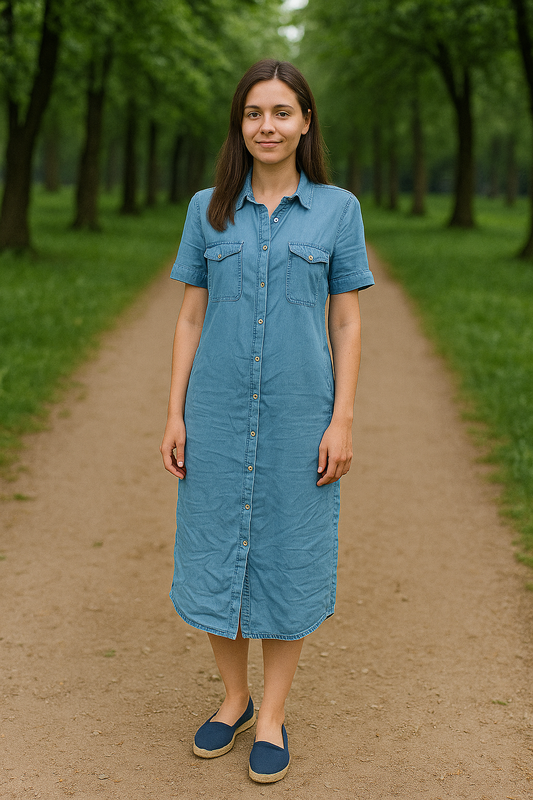 Качественное легкое джинсовое платье рубашка на пуговицах снова в тренде.Е карманы и шлейки для пояса. Состав ткани лиоцелл 70% бавовна 30%. Стан идеален. ⭐Замеры полуобъем плечи-39 пог-51 пот-47-48 пос-56 рукав-63 длина-119 ширина подолу-58 Оплата на картку Укрпошта Нова пошта