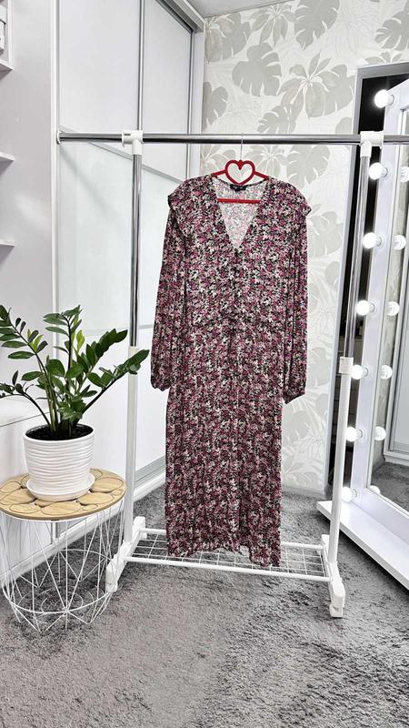 Платье-миди в цветочный принт, р. 24. Ткань 100% вискоза. В талии регулируется. длина 130 см, длина до линии отреза 46 см. ог 128 см. от 114 см. ос 140 см. рукав 63 см.