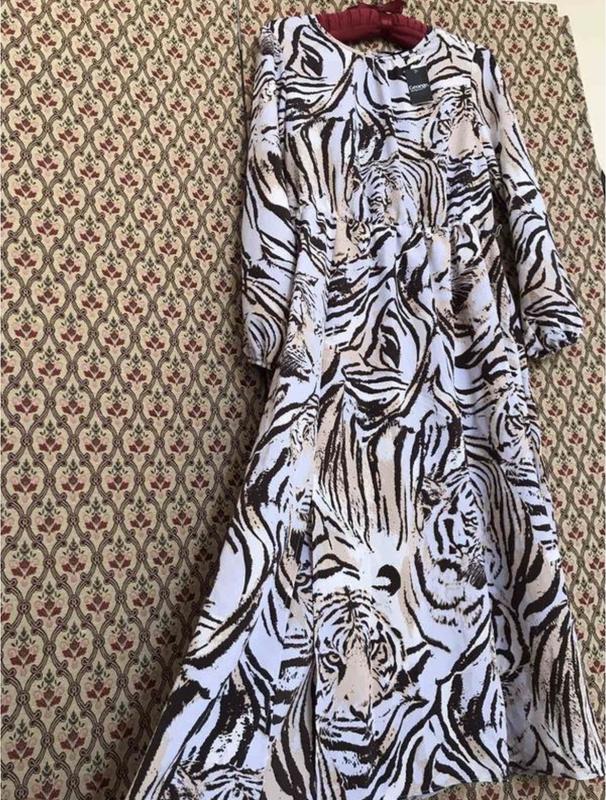 Сукня міді хижий принт шифонове плаття нарядне з розрізом пишні рукави