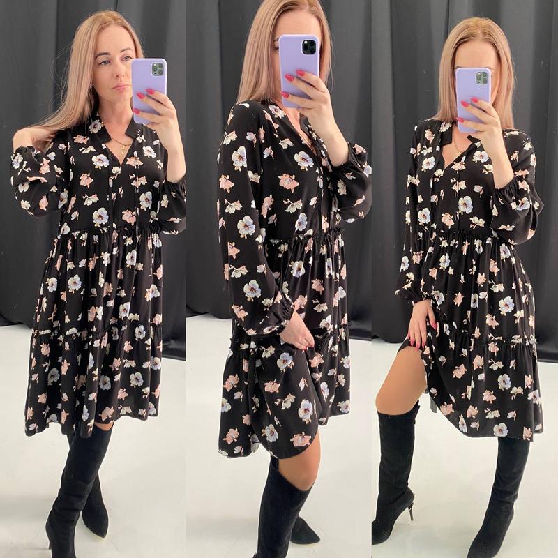 Замеры модель 018💕 Талия и бедра свободного кроя 42-44: длина 95 см, ОГ 98 см, рукав 60 см, плечи 76 см 46-48: длина 95 см, ОГ 104 см, рукав 60 см, плечи 88 см 50-52: длина 97 см, ОГ 110 см, рукав 60 см, плечи 96 см ❤️ Снова отшиваем самую любимую модель платьев ☺️ В наличии уже в количестве средина -ботница Сукня 🙂 Модель 018 Размеры: 42-44,46-48,50-52 Ткань: шелковый софт Цвет: темный синий в белый горошек, черный в белый горошек, черный большой цветок, молочный большой цветок, белый мелкий цветок, темный синий мелкий цветок, черный с красным цветком, черный с мелким цветком ✔️Платье в стиле оверсайз, свободного кроя, воротник стойка 815.00 грн