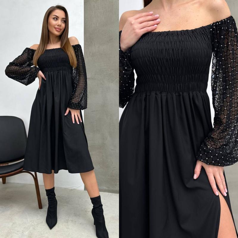 Сукня Мод 130 Размер:42-44,46-48,50-52 Тканина:софт +сетка Платье, которое будет вам придавать уверенность в себе и в которой вы будете стильно выглядеть.Длина миди.На груди резинка.Мозная одевать со спущенными и с приподнятыми плечами.Супер качество,по супер цене. Цена: 720 грн.имм