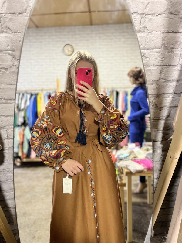 Теперь мой самый любимый бестселлер 🤎 Льняное платье с вышивкой, объемный рукав, платье выполнено в длине миди, держит форму, в талии можно фиксировать пояском, шикарное, яркая вышивка на рукавчиках 🌼 Есть в цвете: 🤎Коричневый 🤎Беж 🖤Черный 🤍Белый Размер универсальный, подходит на S-M-небольшая L( смотреть по ОГ)