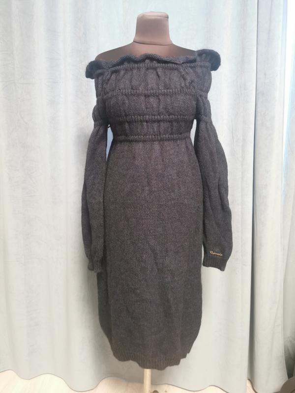 Дуже красива і тепла в'язана сукня, розмір універсальний, піде від S до XL оскільки дуже тягнеться. Можна вдягати поверх білої сорочки, виглядає дуже вишукано. Довжина 96. Колір темно синій. ПОГ 31-50, ПОС 50-70, рукав від краю горловини 69. Склад акрил, мохер, шерсть