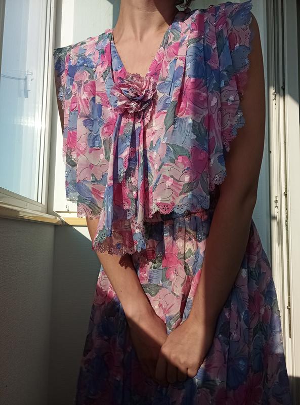 очень красивая, сочетание розового и сиреневых цветов, талия на резинке, размер s-m