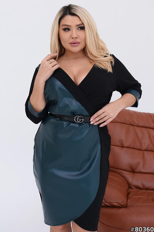 Ткань:креп-дайвинг +эко-кожа Размер:,50-52,54-56,58-60 цвет;черный+ черный , черный + бутылка 50-52 ОГ - 108 см , длина рукава- 40 см, длина изделия - 104 см, ОБ - 110см 54-56 ОГ - 116 см, длина рукава- 40 см, длина изделия - 104 см, ОБ - 118 см 58-60 ОГ - 124 см, длина рукава - 40 см, длина изделия - 104 см, ОБ - 126 см змеек и застежек нет Замеры сняты по изделию Пояс + 100 грн. лб