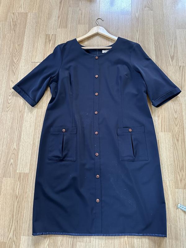 Сукня типу офісна, можна на свято і на кожен день Пог 57 Поб 62 Довжина 100 Рукав трохи подовжений 37 Одягений 2 рази Стройнить за рахунок планки Глибокий синій колір Тканина дорога, цупка, гарно довго буде носитися.