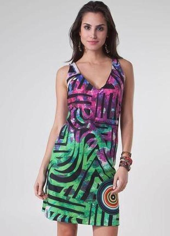 Элегантное платье по фигуре в абстрактный принт креативного испанского бренда Desigual.Стан новой вещи, сток. Приталенный крой и глубокий V-образный вырез горловины делают это платье комфортным и удобным, надев которое вы точно не останетесь не замечены. Дополняют стиль модели декоративный шов по верхней части изделия и оригинальная кокетка по спинке. Изделие на подкладке.По спинке платье дополнено длинной молнией до талии.Высококачественная смесь полиэстера и эластана всегда приятно ложится на кожу и впечатляет своими оптимальными характеристиками ношения. Благодаря своей длине и приталенному крою изделие подчеркивает вашу фигуру и всегда заставляет выглядеть великолепно. Размер L. -длина 88 -пог 45 -пот 39 -поб 46 Состав: 97% полиэстер - ткань нового поколения, материал очень приятный на ощупь и при одевании вещи, износостойкий без потери цвета, ткань не подвержена появлению стойких заломов при смывании, а самое главное - проста в уходе. 3% еластан подкладка: 82% полиамид 18% полиэстер Desigual – испанская марка одежды, которая известна своей оригинальностью и неординарностью во всем мире. Одежда Desigual – на любительница, но вряд ли буйство красок и яркость оставят равнодушным любого. Каждая коллекция Desigual это нечто новое, особенное, неповторимое. Отличительные особенности данной марки: яркие принты, орнаменты, узоры в целом оригинальность и креативность во всех ее проявлениях. Desigual эмоциональный бренд, базирующийся насчастливье и позитиве. Одежда от Desigual полностью соответствует девизу компании и является поистине яркой! Рассчитанная одежда в большинстве случаев на молодежь и на самом деле это яркий стиль casual. Цены на одежду соответствуют среднему уровню. Мужская и женская и детская коллекция Desigual по-настоящему яркая и идеально подойдет для тех людей, которые хотят выделяться из толпы. Особенностью бренда являются оригинальные сочетания тканей и фактур! Коллекции – это поиск новых идей. Создание параллельного мира, лишенного скучных и серых будней, освещенного ослепительным солнечным светом! Интересно, что вещи Desigual легко узнать. Они отличаются наличием разнообразных узоров и орнаментов, ручной вышивки, авторских аппликаций и коллажей, а некоторые модели удивят акварельной росписью.
