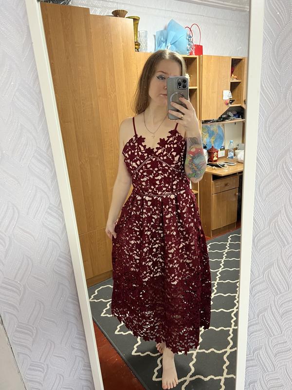 Непревзойденное платье, которого точно нет у твоей подружки 😊 Платье имеет телесную подкладку,не просвечивает ничего, бордовое кружево сверху достаточно плотное, и платье немного имеет вес за счет этого, и выглядит божественно )
