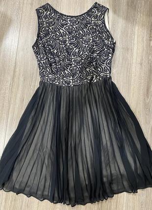 Нарядна сукня F&F, розмір 46-48. В ідеальному стані. Вдягалось 1 раз. Довжина 103 см, довжина топу 45 см, пог-50 см, талія 1/2-43 см. Стегна по другій спідниці 57 см. Тканина гарно тягнеться.