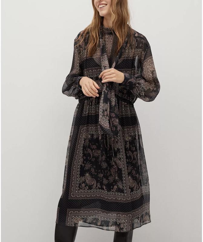 Очень легкое платье миди Свободный фасон Красивий принт Рукава свободные Плечевой шов спущен Есть завязка в талии Снизу есть подклад 100% полиэстер ❣️Платье полностью новое❣️ одевалось только для примерки Не подходит размер ( Размер L