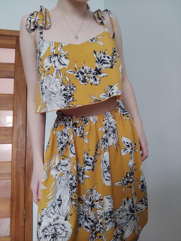 костюм - юбка и топ состояние - новый размер S M костюм состоит: из топа на связках и юбке, костюм свободного кроя. ткань легкая, приятная на ощупь. по замерам и дополнительным фото, обратитесь. 💸Если делаете покупку то на 2 вещь -10% скидки. Берете две вещи, то третья в подарок по цене дешевле🛍️ переходите в мой профиль там много интересного🥰