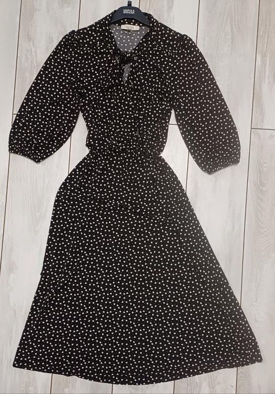 Очень красивое и нежное платье. Принт сердечки, зона декольте сделана на запах, сверху завязывается на бант. Замеры: плечи 35 см, рукав 43 см ( на резинке), длина 125 см, нпо талия 35 см. материал очень хорошо тянется