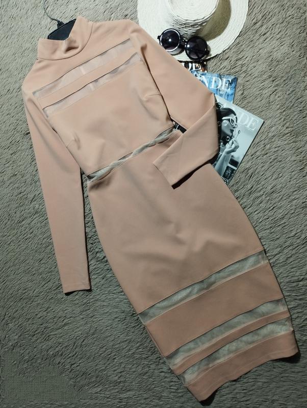 В отличном состоянии, сзади есть пятно (последняя фото), в цене учтены. Красивое платье миди по фигуре. Ткань средней плотности, тянется. Выглядит супер 😍 Размер 8/36/S, но смотрите по замерам Замеры (полуохват): Грудь 41 (тянется до 46) Талия 34 (тянется до 37) Бедра 41 (тянется до 48) Рукав 57 Длина от плеча 104