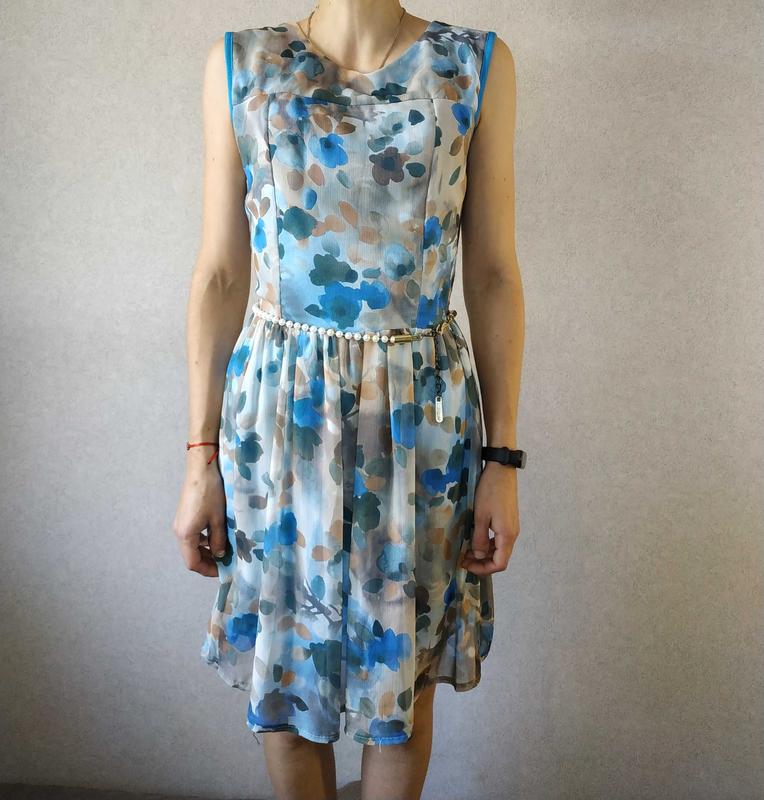 Летнее платье 42 размера с поясом из бусенок, на застежке.