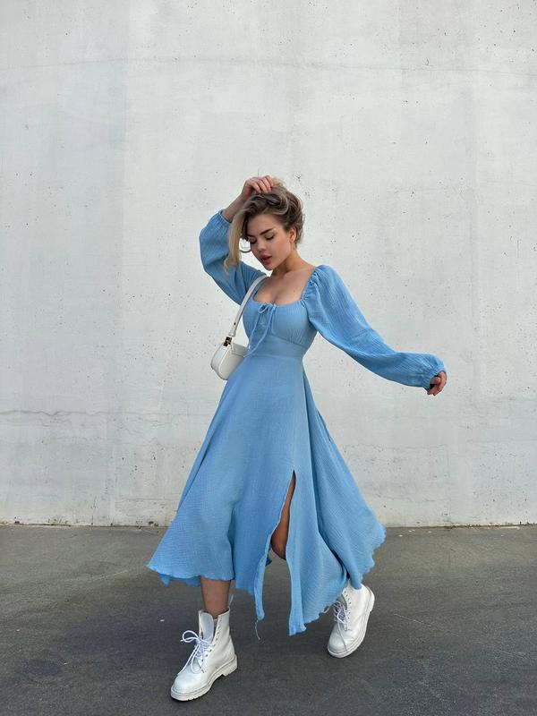 ⚠️Всі заміри дивіться, будь ласка, останнє фото Багато суконь не буває, тим паче саме це, воно таке гарне, ніжне та жіноче 😍, воно буде знахідкою на будь-який випадок 🙌❤️ 🔺Ціна 850 грн 🔺Розмір 42-44, 46-48 🔺Колір блакитний, зелений, чорний, білий, гірчиця, єлектрик 🔺Тканина муслин, на спинці шнурівка, завдяки чому можна регулювати по комфортності, 100% бавовна. Жіночі сукні з натуральних матеріалів стануть яскравим акцентом у незвичайних образах. 234мр