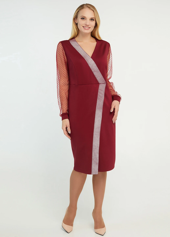 Вишнёвое праздничное платье на запах miledi однотонное, размер 52