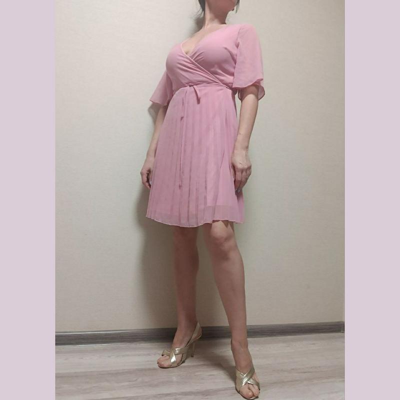 Платье-миди на запах, новое без бирки, низ - плиссе, рукав-разлетайка, есть подкладка, состав- 100% полиэстер, размер указан М но по факту С, на фото одето на рост 165, по факту рассчитано на меньший рост потому что талия в мою случае очень завышена а это конструкцией не предусмотрено НОП-36 длина до талии -37 длина общая -92