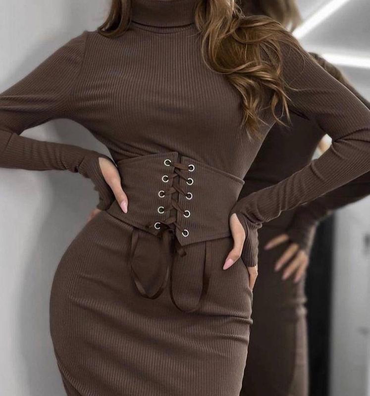 ❤️Платье с корсетом Мод:609 Ткань: Плотный рубчик Размер:42-44;46-48 Цвета: молоко,черный, коричневый ✔️Ткань отлично тянется Цена: 830 грн.град