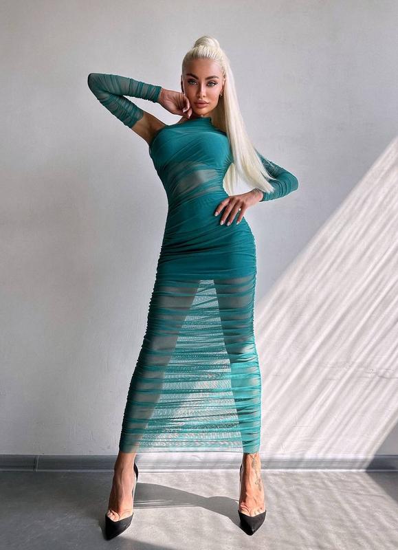 Сукня міді з драпіруванням ▫️тканина: сітка, трикотажна підкладка ▫️розмір: S та М