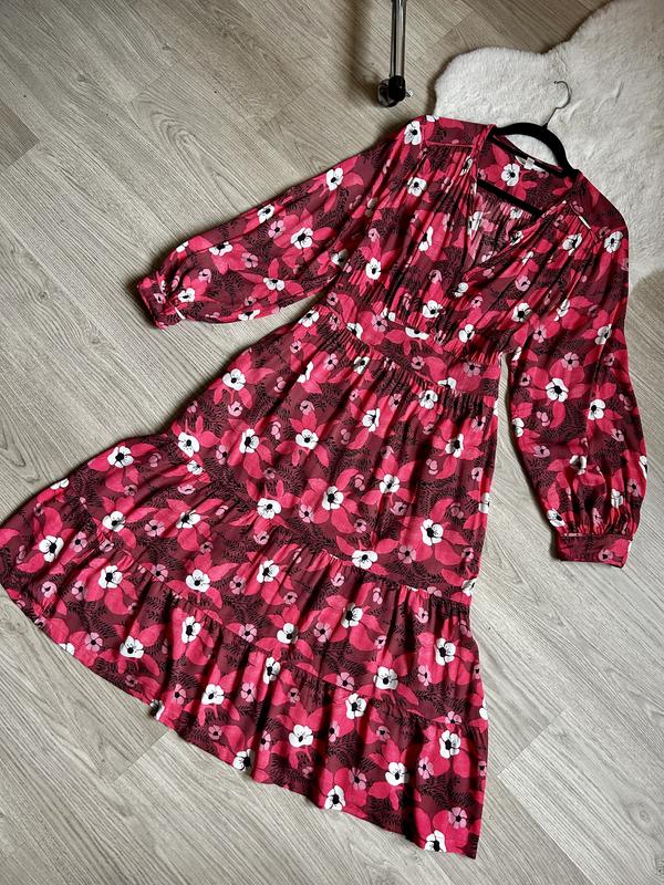 Marks&spenser 18 р Яркое вискозное платье Пог 60 Пот 47-53 Позаду резинка Карманы По стег 80 Пл 42 Рук 61 Топ 44 Длж 120