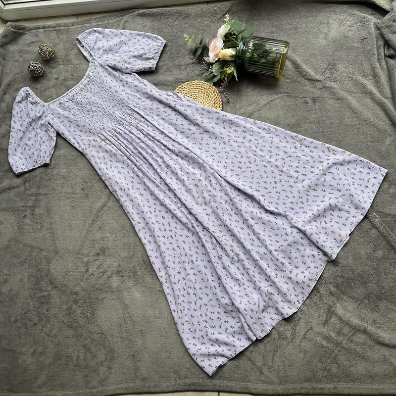 Сукня в квітковий принт, тканина віскоза, довжина міді, збоку розріз, по боках є кармани, ззаду внизу кілька плям в носці не помітно Довжина 115 см Пог 40 см Пот 36 см