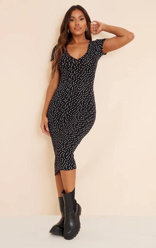 ТОРГУ НЕМАЄ 🖤сукня в горох PLT Розмір XS(6UK) Груди 75+ Талія 60+ Стегна 80+ Довжина 125 см Чудово тягнеться Дуже приємне до тіла 95% віскоза Зріст моделі 177 см(на ній розмір S)