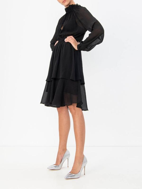 Сукня Na-kd легка чорна з високим коміром та оброками в розмірі XS, буде й на S Заміри: довжина - 96 см, в грудях напівобхват - 50 см, в талії ( резинка) - 32 см
