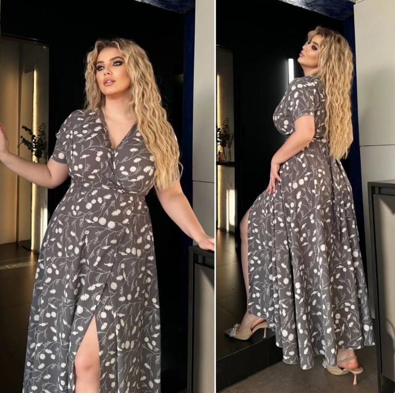 Модель: 1010 Тканина: софт Размер: 48-50, 52-54, 56-58, 60-62 Цвет: пудра, серый, синий, черные цветы, зеленый, голубой, черные листья Платье на запах, регулируется поясом. Длина: 142см Замеры от: 48-50 ог 100 от 86 52-54 ог 110 от 95 56-58 ог 120 от 104 60-62 ог 130 от 113 до 145 груди !