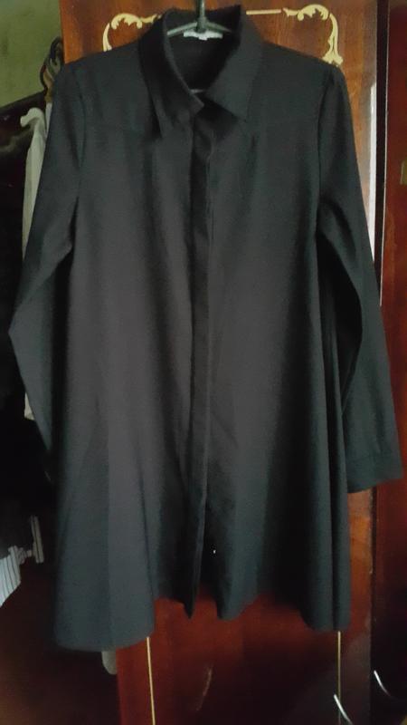 Строгое элегантное платье -рубашка. Очень красивый крой, потайная планка. Расслабленное, расклешенное к низу. Длина 93, от подмышки до подмышки 47, пот 53, поб 65. Между плечами 38, плечо 11, рукав 63