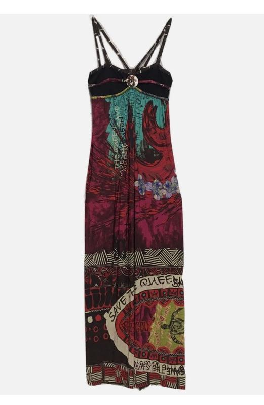 . Каждая вещь известного итальянского бренда Save the Queen это произведение искусства и это делает марку уникальной. Страсть к искусству выражается не только в оригинальной одежде, но и в особом дизайне интерьеров бутиков, которые оформлены как настоящие музее. Уникальная коллекционная вещь. Дизайнерский рисунок на ткани и пуговицы с надписью имени бренда. Сзади кольцо-подвеска с тиснением. РОЗМІР: S ЗАМЕРЫ: длина ПОГ 35/48 ПОТ 31/44 ПОБ 39/60 СОСТАВ: вискоза 92% эластан 8% СТАН: идеальный ➖➖➖➖➖➖➖➖➖ Вещи в наличии👗🧥👠 Фото на себе не делаете. 🙅♀️ Отправка НП Укрпочтта 📦 Вся необходимая информация придам😊