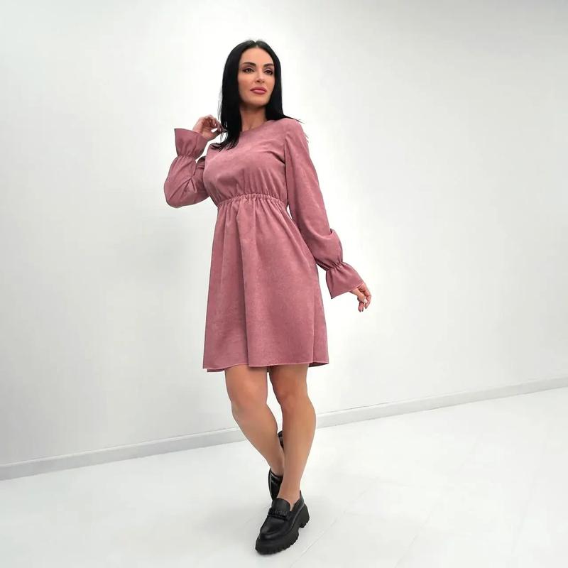 Вельветовое платье с завышеной талией 46-48 размер. фрезовый