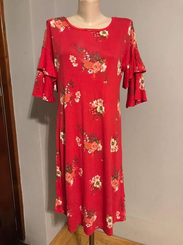 Красивенное вискозное платье,пог-58 см.пот-54 см поб 60-65 см.длина -95 см.очень красивые рукава.