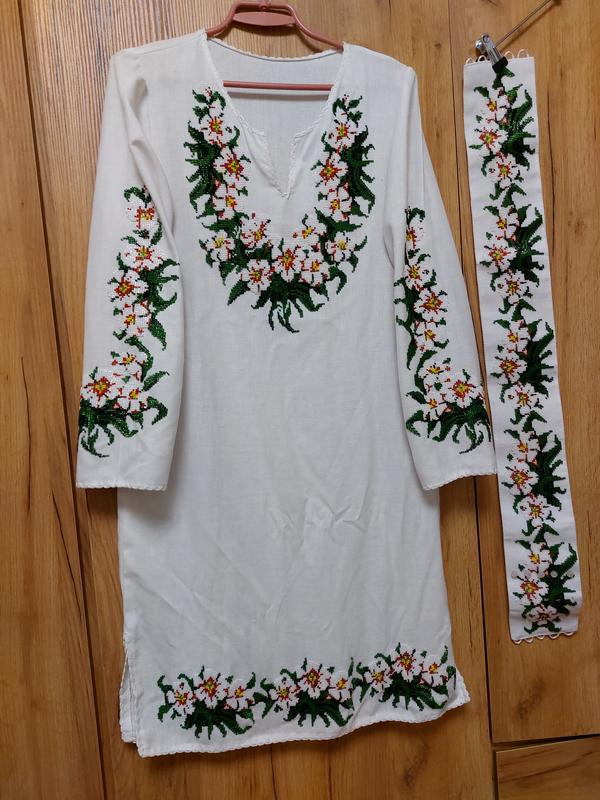 Качественное платье вышиванка с вышитым широким поясом Вышивка качественная, дорогой бисер