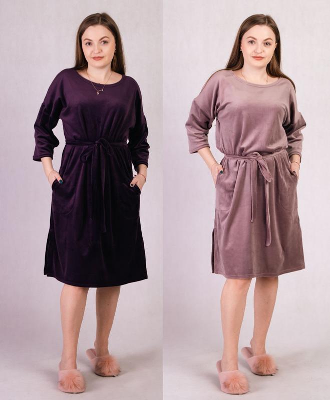 Красивое женское платье в свободном стиле со спущенными плечами и рукавом 3/4, отлично подойдет как для обычных женщин, так и для беременных Материал плюшевый велюр бархат, 75% хлопок, 25% эластан. Размеры: 48/50 - 720 грн 52/54 - 750 грн 56/58 - 780 грн