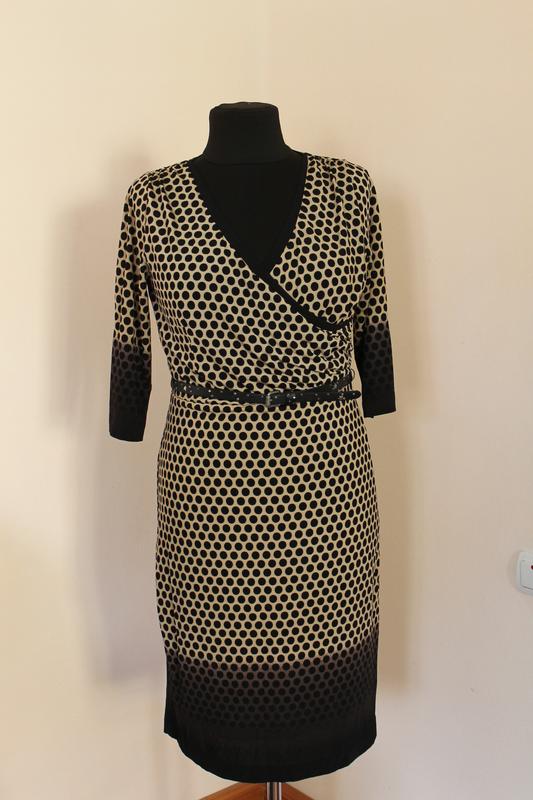 Класне плаття з віскози -97% і еластану - 3%, вироблено в Німеччині, придбано в Іспанії, розмір 40 вказано і одягнуто на манекен 52 розміру, оскільки тканина еластична.Продається без ремінця( так і задумано було, це я для різноманіття так одягнула.Довжина-105см, пог-50см,пот-40 см, рукав від плеча-45см,побіди-54см.