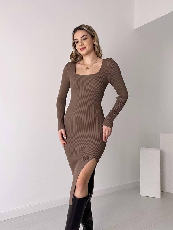 Платье с разрезом 🕊️ Модель 2032 ▫Тканина: рубчик ▫Размерный ряд: 42-46,(S-M) 48-52(M-XL) ▫Цвет: мокко, черный 🏷550 грн Это платье точно станет твоим любимым 💔 Идеально продуманные лекала, плотный приятный к телу рубчик, разрез на ножке - именно то, что ты искала 👌🩶
