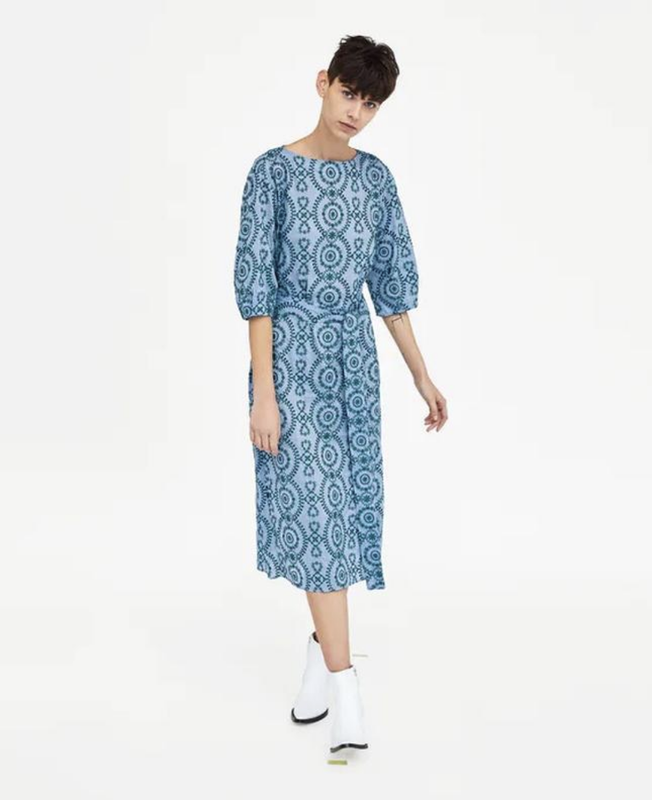 Красивое и невесомое платье от zara в размере М, длина миди, имеет разрезы, интересные рукава 3/4. Застежка пуговицы на спине. Нет оригинального пояса.