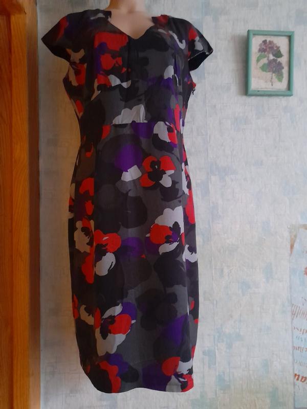 Віскозне плаття р. 48 англ р 14 відрізна талія підкладка до талії по низу ззаду розпірка на боці застібка блискавка тканина - щільна віскоза довжина - 100 см пог - 51 см поб - 52 см