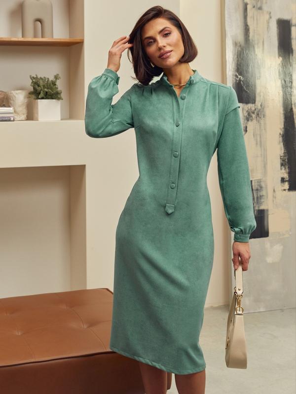 🌸Пряма сукня-сорочка. Модель с воротником стойка. Застегивается на пуговицы по планке. ✔Размер:46,48,50,52 длина по спинке:111см длина рукава:63 см. 🧵Состав: 35% вискоза, 60% полиэстер, 5% эластан 🎨Цвет: мятный 🧵Материал: Замша-диагональ 💳Цена:1490грн Арт43837 ‼️Для заказа и детальной информации ndем в дырект 📩‼️