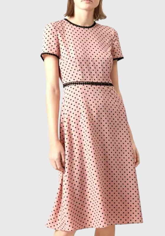Платье миди летнее в горошек Hobbs размер указан 10 (р. XS/S) На спине скрытая молния. внутри тонкая шифоновая подкладка. Цвет: нежно-розовый. Состояние как новое! замеры: - длина от плеча 110 см - ПОГ 45/46 см - ПОТ 37 см - ПОБ 56/67 см - рукав 19 см