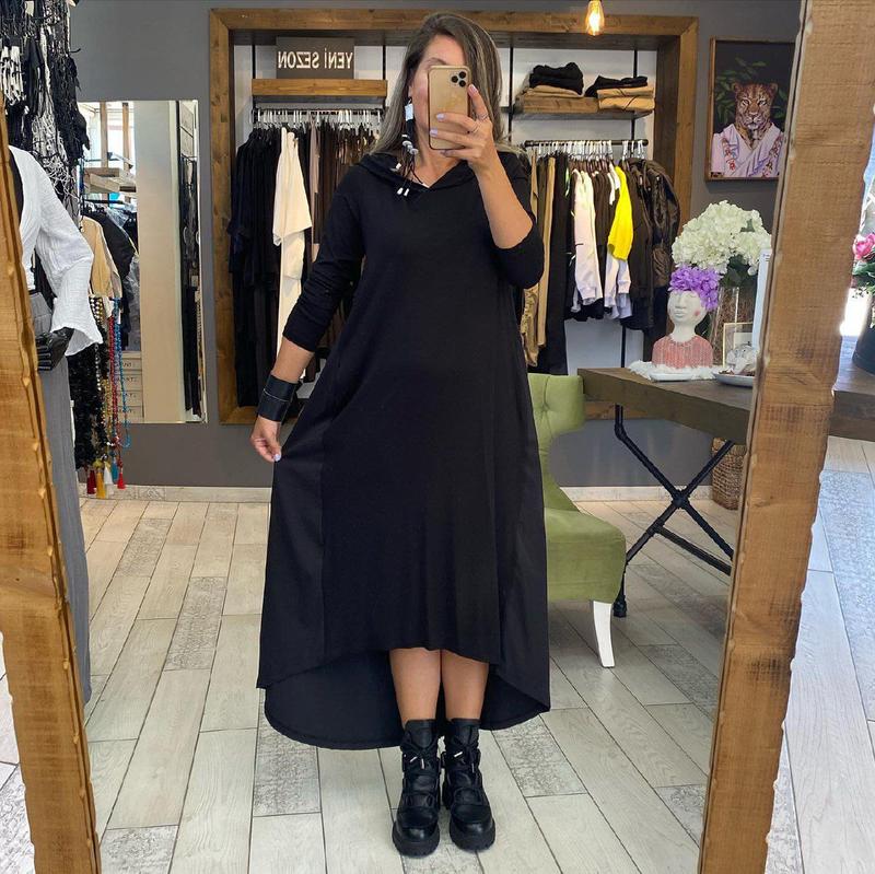 ❤️Платье в стиле спорт шик Модель 120 ⭐️Размер: 48-52, 54-58, 60-64 Ткань: трикотаж микродайвинг+плин Очень хорошее качество!🔥 Стильное платье в стиле спорт шик. Имеет асимметричный крой, боковые карманы, капюшон. Тканина тягнеться. ✅Замеры: 🟢48-52 Обхват груди 112 см Обхват стегон 144 см Длина рукава 49 см Длина изделия по переду 113 см, по уду 128 см 🟢54-58 Обхват груди 122 см Обхват стегон 148 см Длина рукава 50 см Длина изделия по переду 113 см, по уду 130 см 🟢60-64 Обхват груди 132 см Обхват стегон 166 см Длина рукава 51 см Длина изделия по переду 113 см, по уду 133 см
